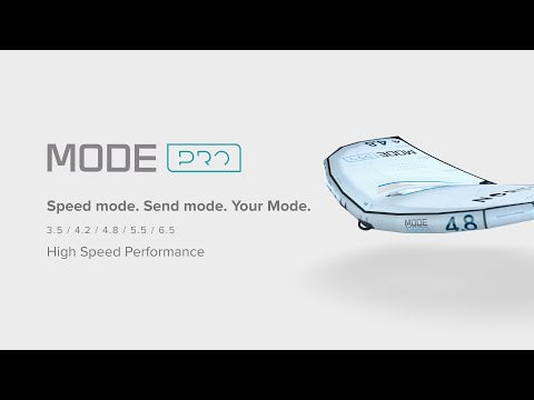 The Mode Pro has a stiff, lightweight N-Weave45 airframe and a strong, durable Matrix canopy for efficient power delivery and high-end stability. The super-stiff airframe transfers wind energy into greater forward speed, with explosive boost and hangtime. The high-tenacity canopy complements the increased airframe tension, increasing the wind range and shape-hold in all conditions. For 2025, we’ve introduced the ShiftLock modular track mounting system, for custom positioning of any size ShiftLock carbon handle or boom. The Mode Pro now features anti-deflection Carbon UDi Technology inside the LE for a faster, more direct response. The wing’s profile sections are thinner up front, with increased depth in the center for added high-speed performance in a wider wind range. We’ve created a cleaner canopy with new radial geometric panel cuts and load diffusers. These work in harmony to distribute tension more evenly in defined load directions across the canopy and improve aerodynamic flow. We designed the Mode Pro primarily for speed, but the stiffer airframe also translates into unprecedented loft for higher jumps and forward momentum on landings. With incredible high-end stability, the 3.5 and 4.2m are ideal for use in stronger winds, while the 4.8 to 6.5m are optimized for greater power in lighter air. The wing has a balanced lower aspect ratio with rounded wingtips to reduce tip strike.